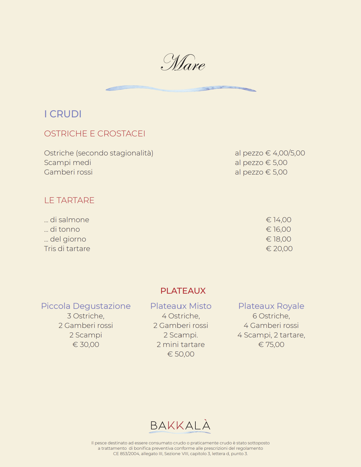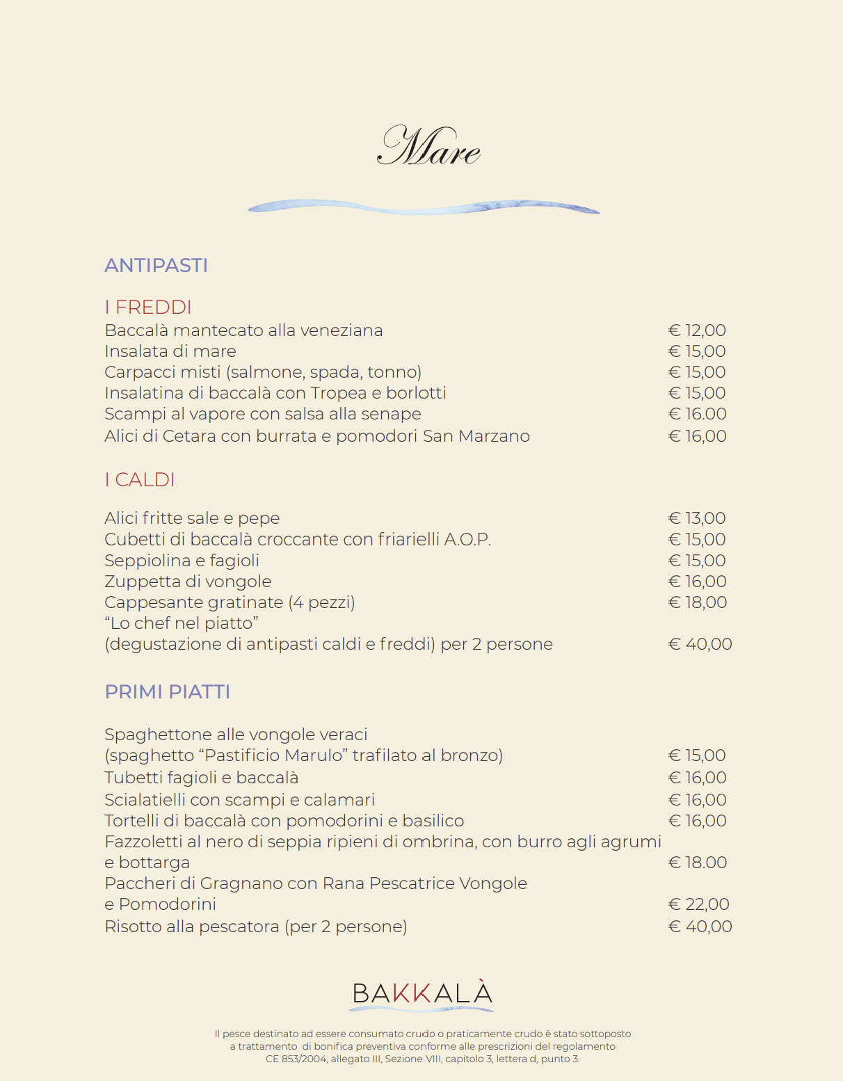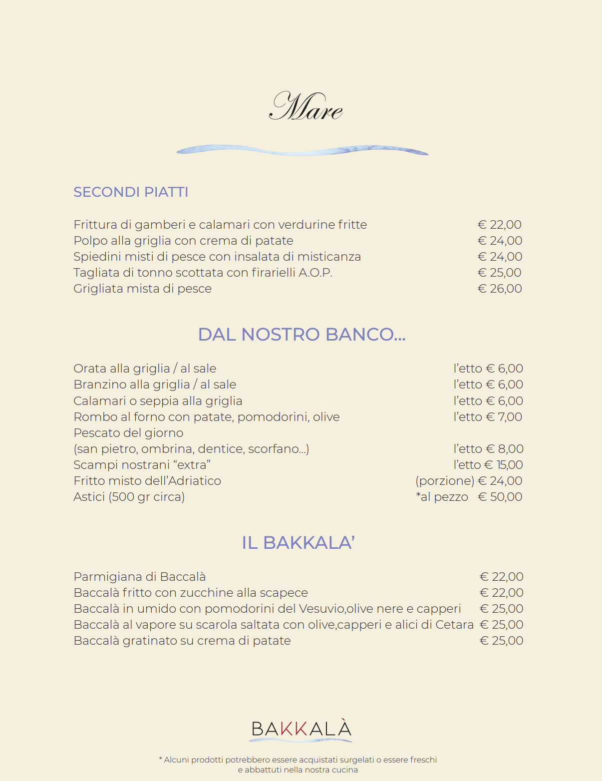 Menù Bakkalà - Mare -