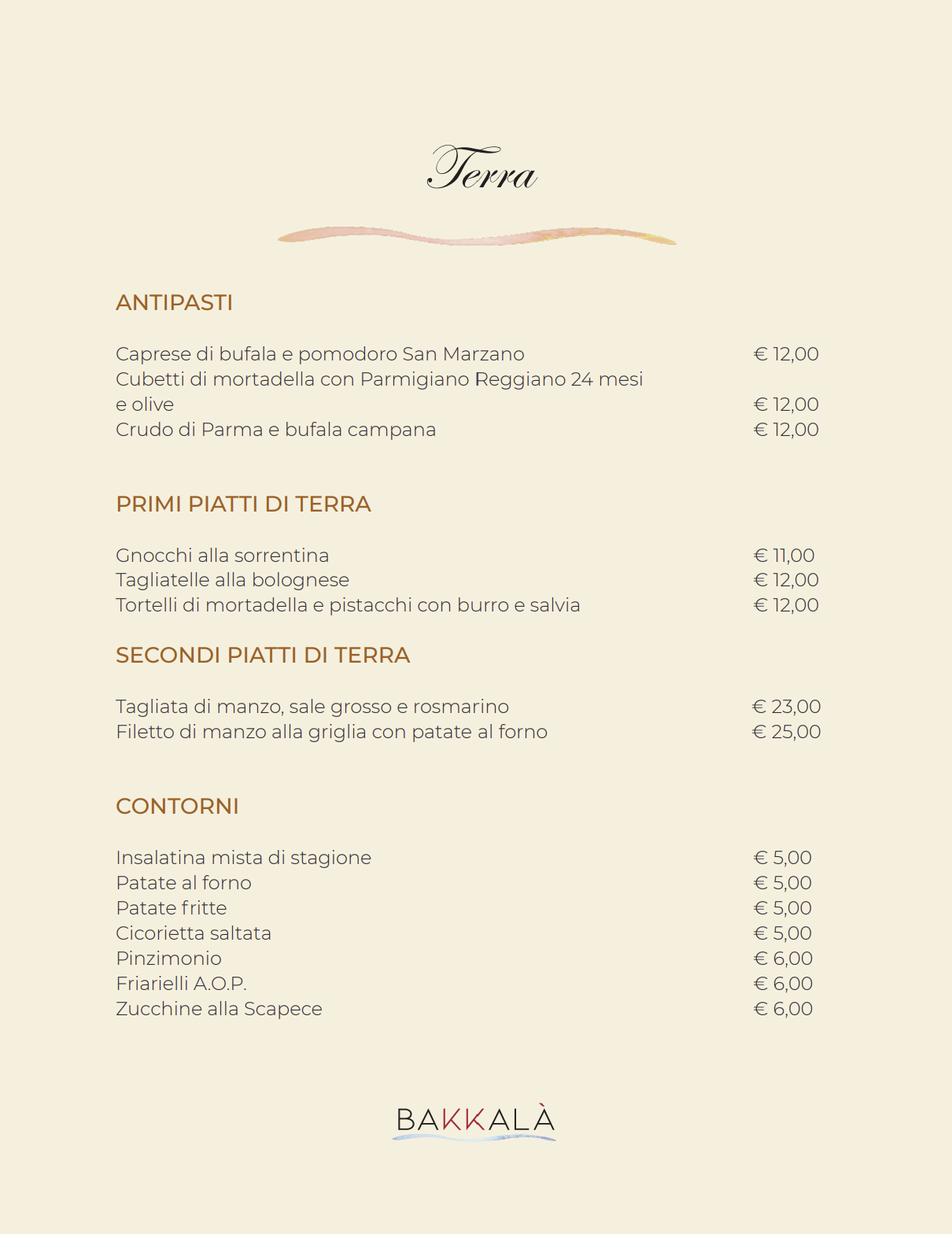Menù Bakkalà - Terra -