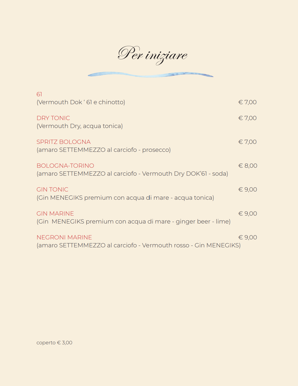 che il personale di sala sarà in grado di abbinare a ogni ordinazione: