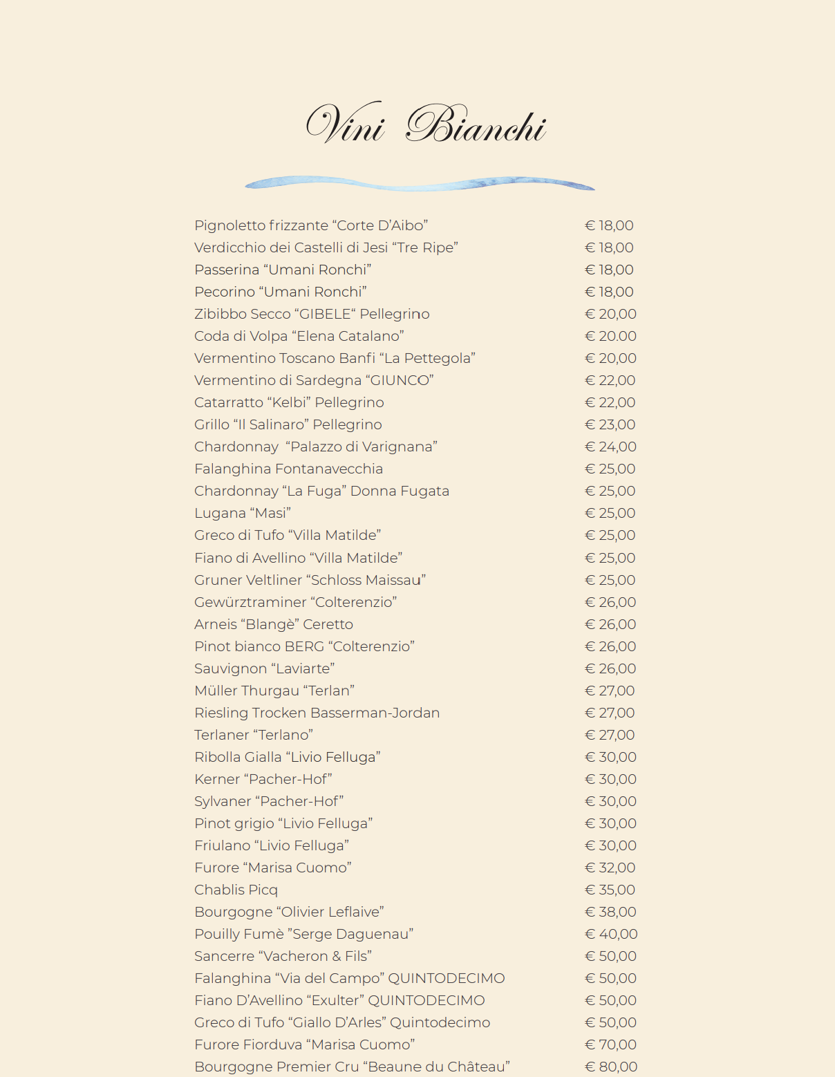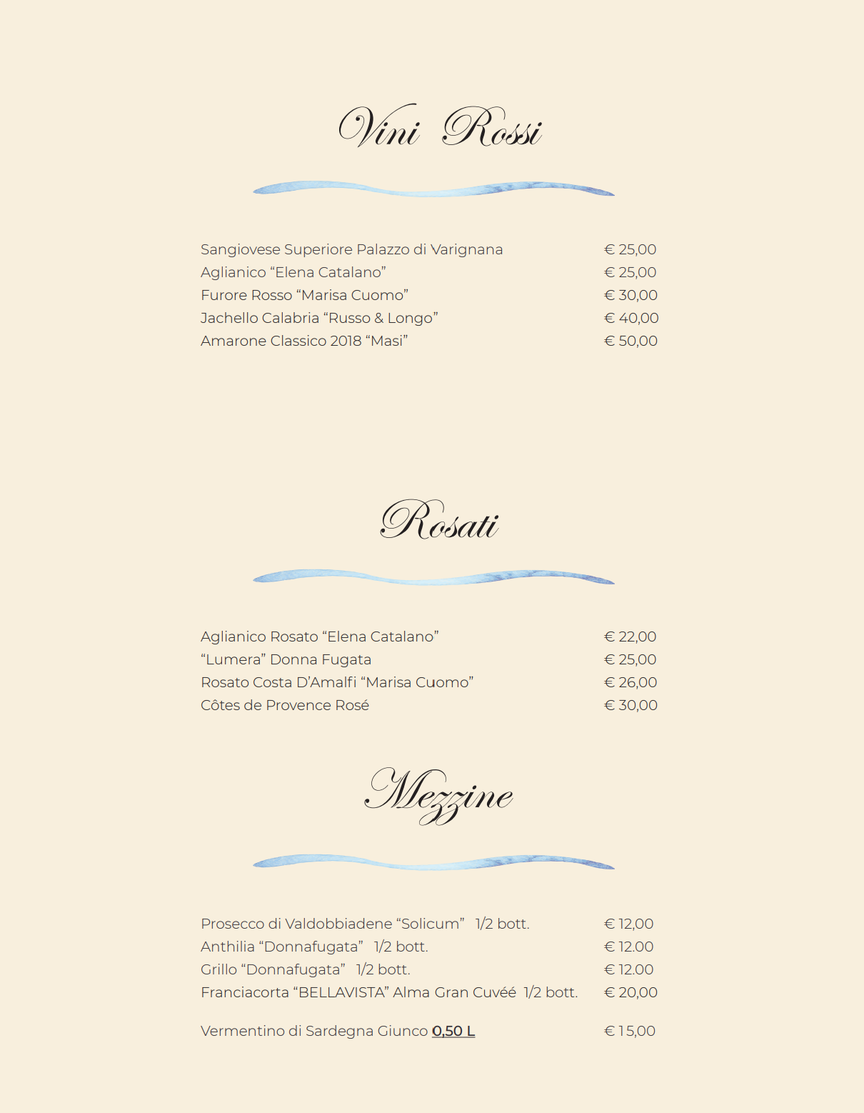 Scopri le etichette di vini che potrai abbinare ai piatti di cucina campana e mediterranea presenti nel menù.